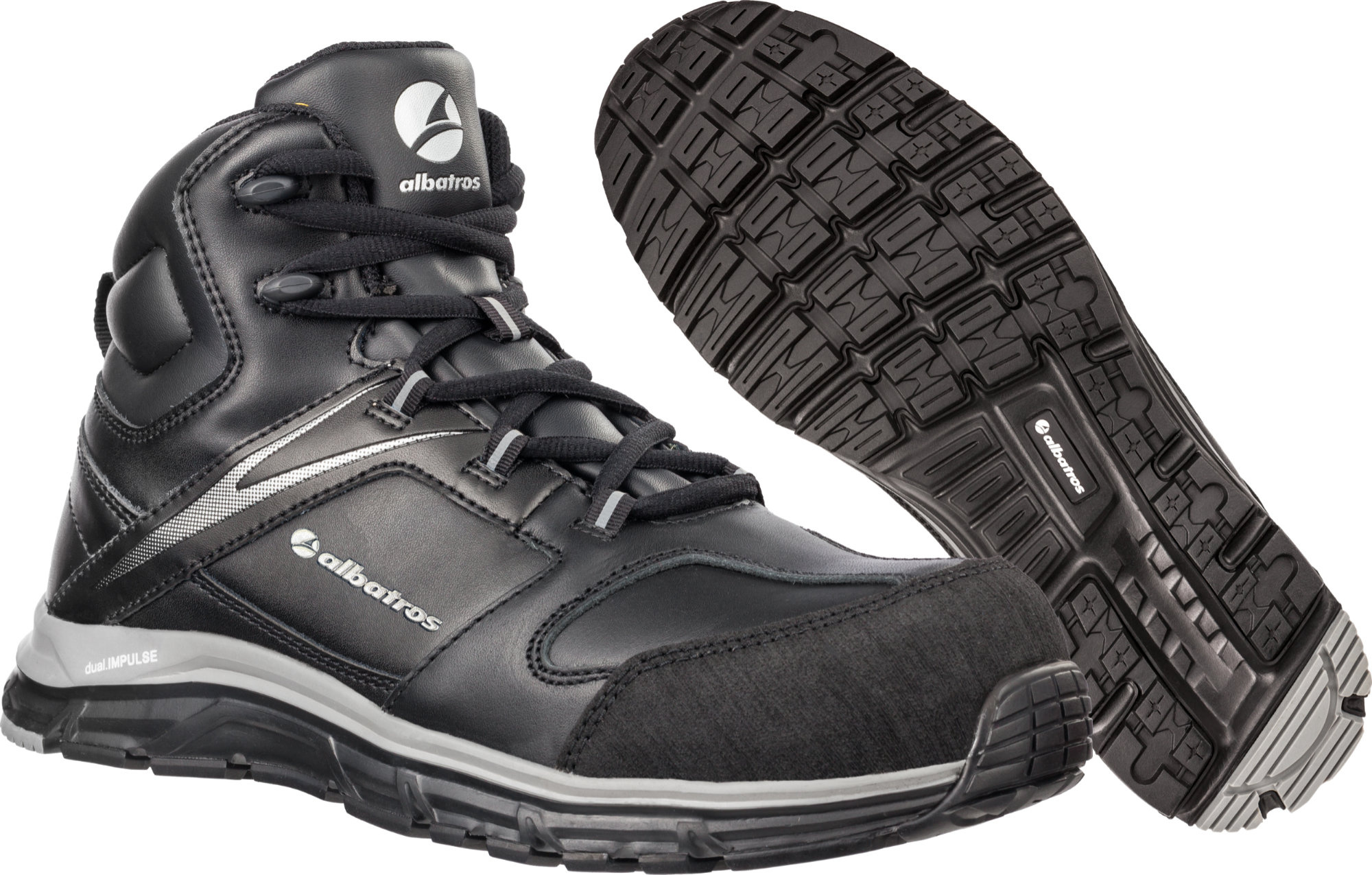 Sportief laag model veiligheidsschoen van het merk Albatros, voorzien van kunststoffen veiligheidsneus.