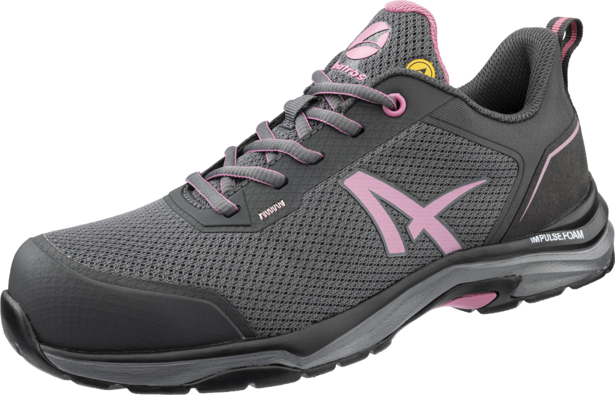 Vlotte Albatros veiligheidsschoenen uit de ladies line met S1P normering in de kleur grijs met roze details.