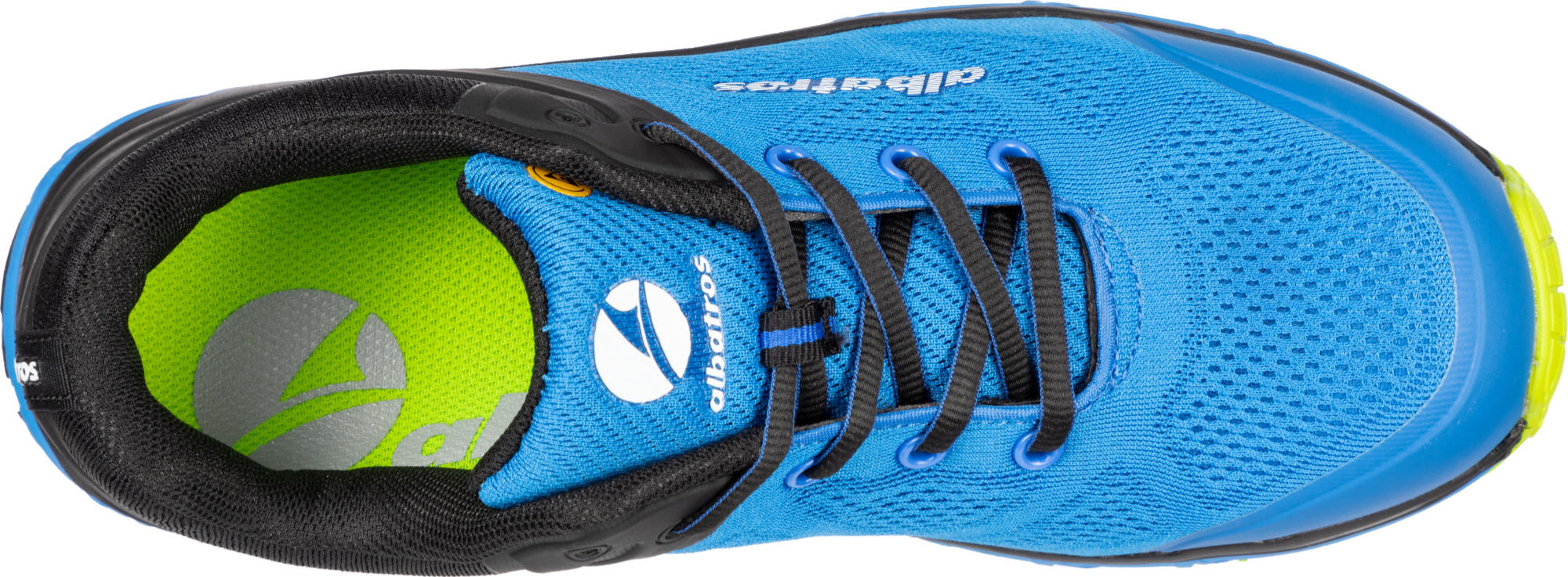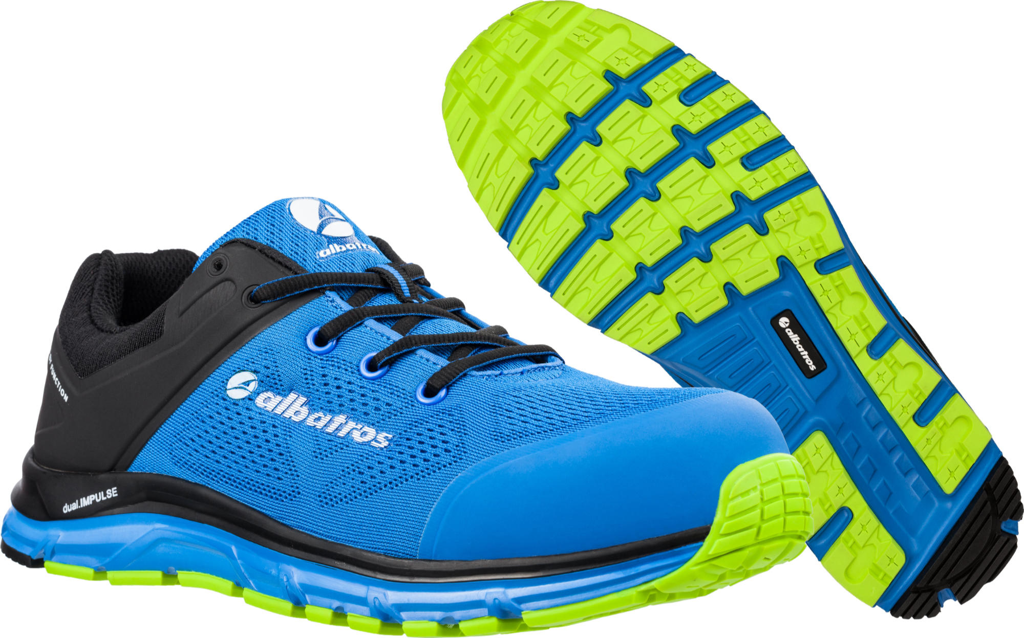 De blauwe Albatros Lift Impulse Low zijn de allereerste werkschoenen met extreem lichtgewicht 'dual.Impulse' middenzooltjes.