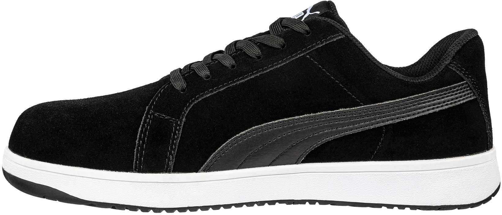 Puma Safety schoenen, waaronder deze Iconic Suede Black S1PL, vallen veelal iets groter/breder uit dan normale schoenen. We krijgen vaak omruil verzoeken voor een maat kleiner. Zit je vaak tussen 2 maten in, bestel dan direct de kleinere maat.