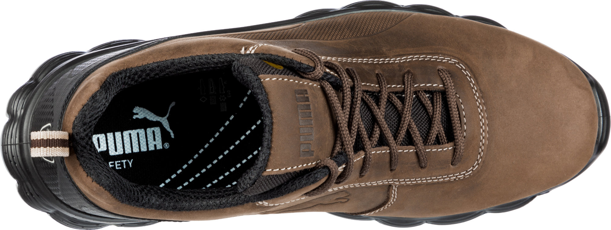 Puma werkschoenen model Condor Low 64.054 met ESD en S3 normering. De bruine Puma werkschoenen hebben reflectie strepen.