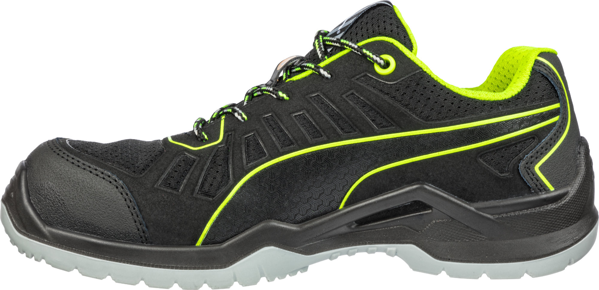 De Puma 64210 zijn metaalvrije werkschoenen met hightech fiberglas veiligheidsneus. Groen met zwart, in diverse maten beschikbaar.