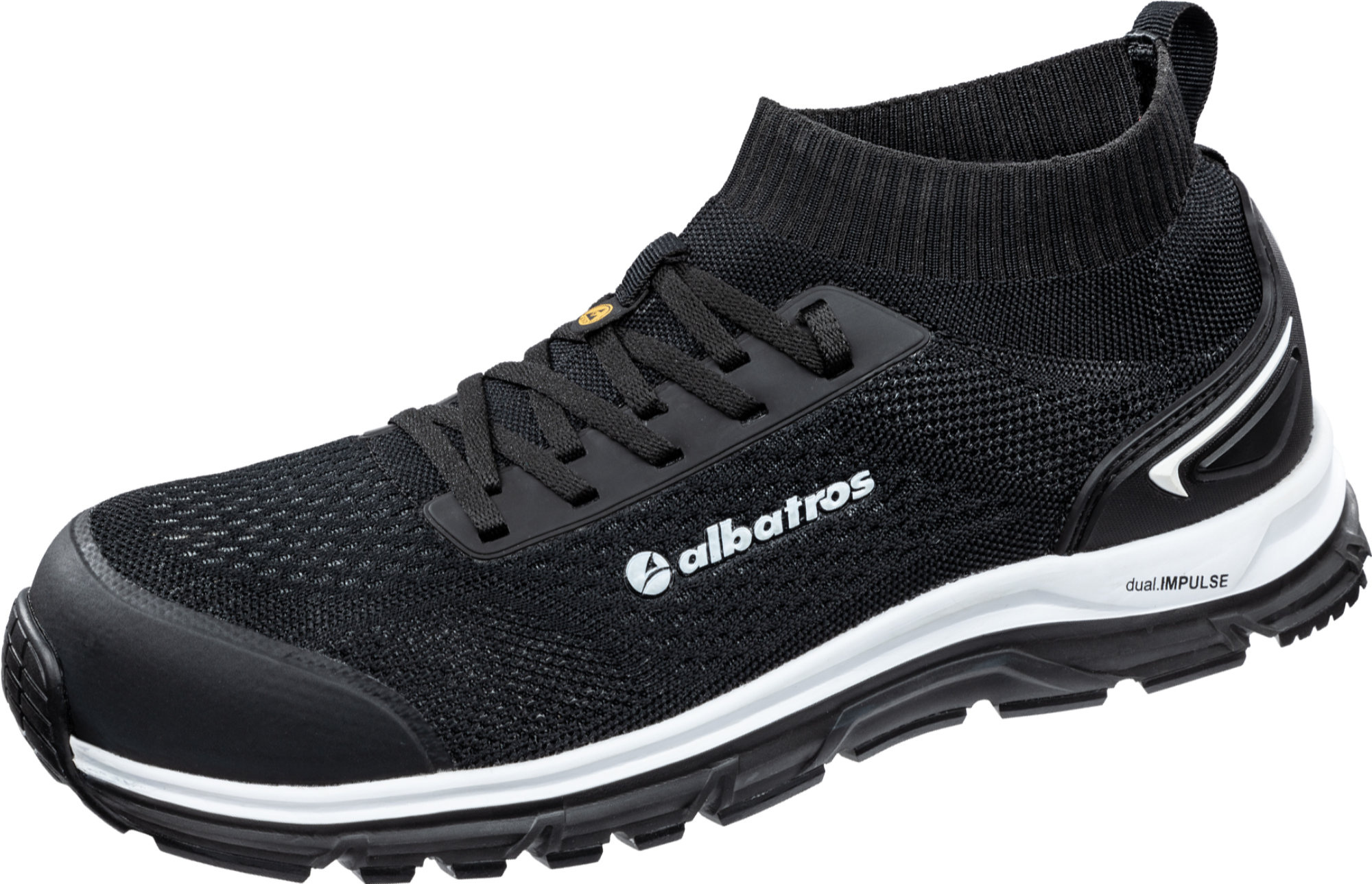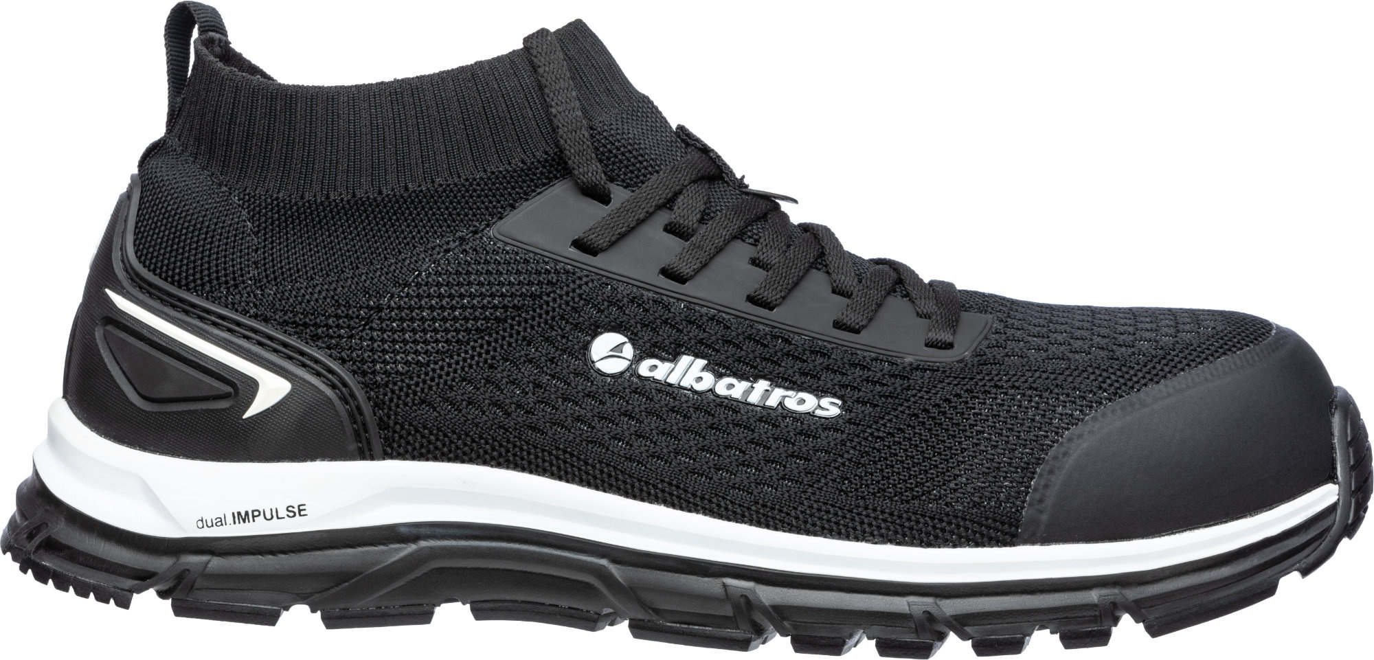 S1P zwarte veiligheidsschoen in de vorm van een soksneaker uit de dual.IMPULSE-lijn van Albatros, waar veiligheid en sportschoen-achtige looks én eigenschappen worden gecombineerd. De stoere Ultimate Impulse Low blinkt ook tussen de andere dual.IMPULSE schoenen uit met zijn functionaliteit en draagcomfort.