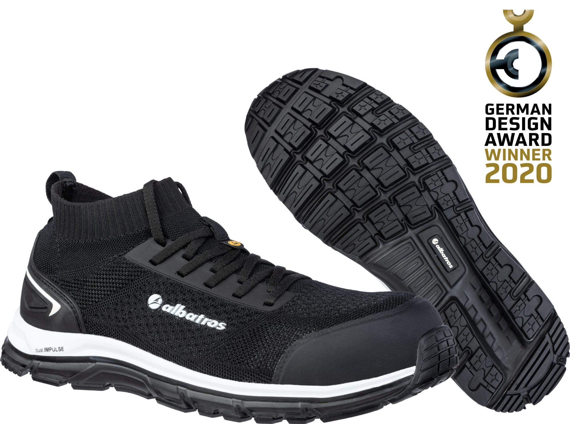 S1P veiligheidsschoen van Albatros die zich als een sok aan de voet aanpast en goed afsluit. Ultiem comfortabele eigenschappen.