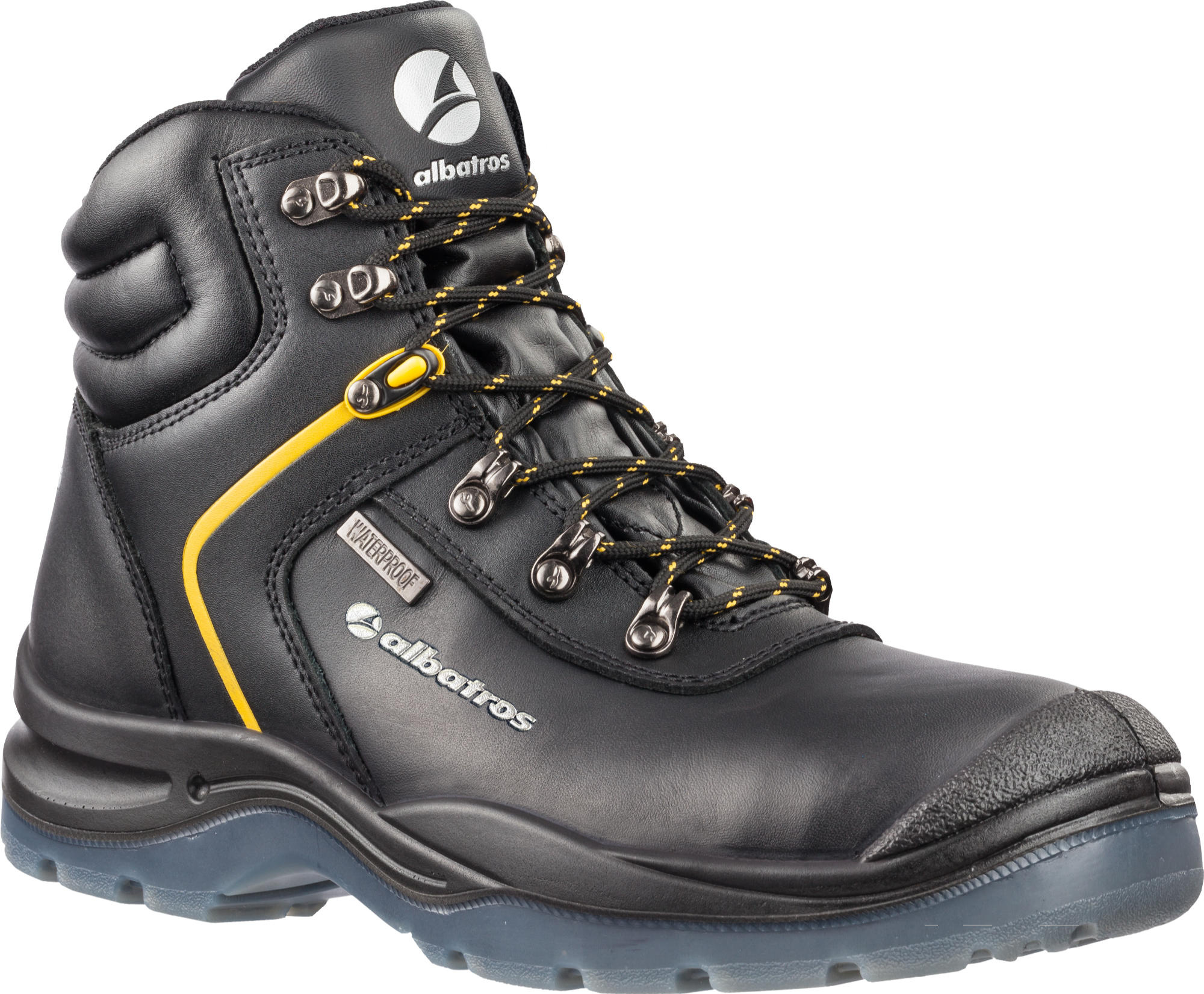De waterdichte werkschoen van Albatros (model 63.112). Deze werkschoen staat hoog in de S3 normering.